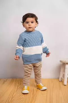 Blusa de tricot infantil antialérgica color azul canto e off .